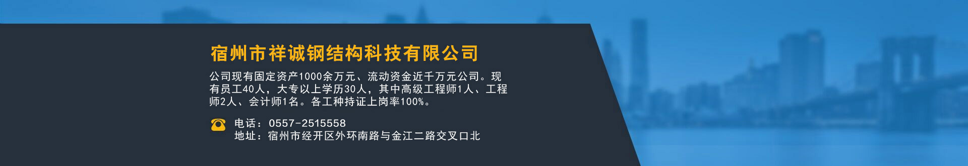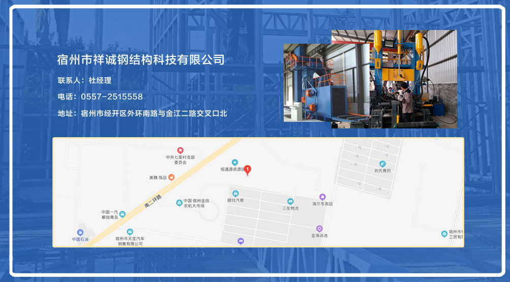 宿州市祥誠鋼結(jié)構(gòu)科技有限公司位于宿州市經(jīng)開區(qū)外環(huán)南路與金江二路交叉口北,公司是一家以建設(shè)產(chǎn)業(yè)化為目標(biāo),匯集大型鋼結(jié)構(gòu)廠房、彩鋼活動房設(shè)計、制作、安裝施工一條龍服務(wù)的知名鋼結(jié)構(gòu)公司。公司現(xiàn)有固定資產(chǎn)1000余萬元、流動資金近千萬元公司。現(xiàn)有員工40人,大專以上學(xué)歷30人,其中高級工程師1人、工程師2人、會計師1名。各工種持證上崗率100%。高效化的年青團(tuán)隊為公司帶來了蓬勃發(fā)展的動力,全體員工以務(wù)實的態(tài)度,拼搏的精神,創(chuàng)造著企業(yè)的每一天。 公司組織結(jié)構(gòu)嚴(yán)格按現(xiàn)代企業(yè)制度設(shè)計,管理機(jī)構(gòu)設(shè)置合理,制度完善,各部門分工明確...